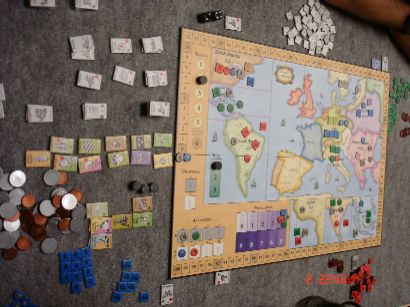Un gros jeu avec plein de mécanisme qui tourne très bien mais qui est un peu long et des fois assez répétitif. Le calcul des majorités dans les différents territoires et les différents bonus à identifier rendent le jeu difficilement appréhendable dans sa globalité à la première partie. Les filles ont pas trop aimé cet aspect compliqué qui fait effectivement que le jeu est un peu lent et qu'il faut attendre que les autres aient joué pour réfléchir à ce qu'on va faire.